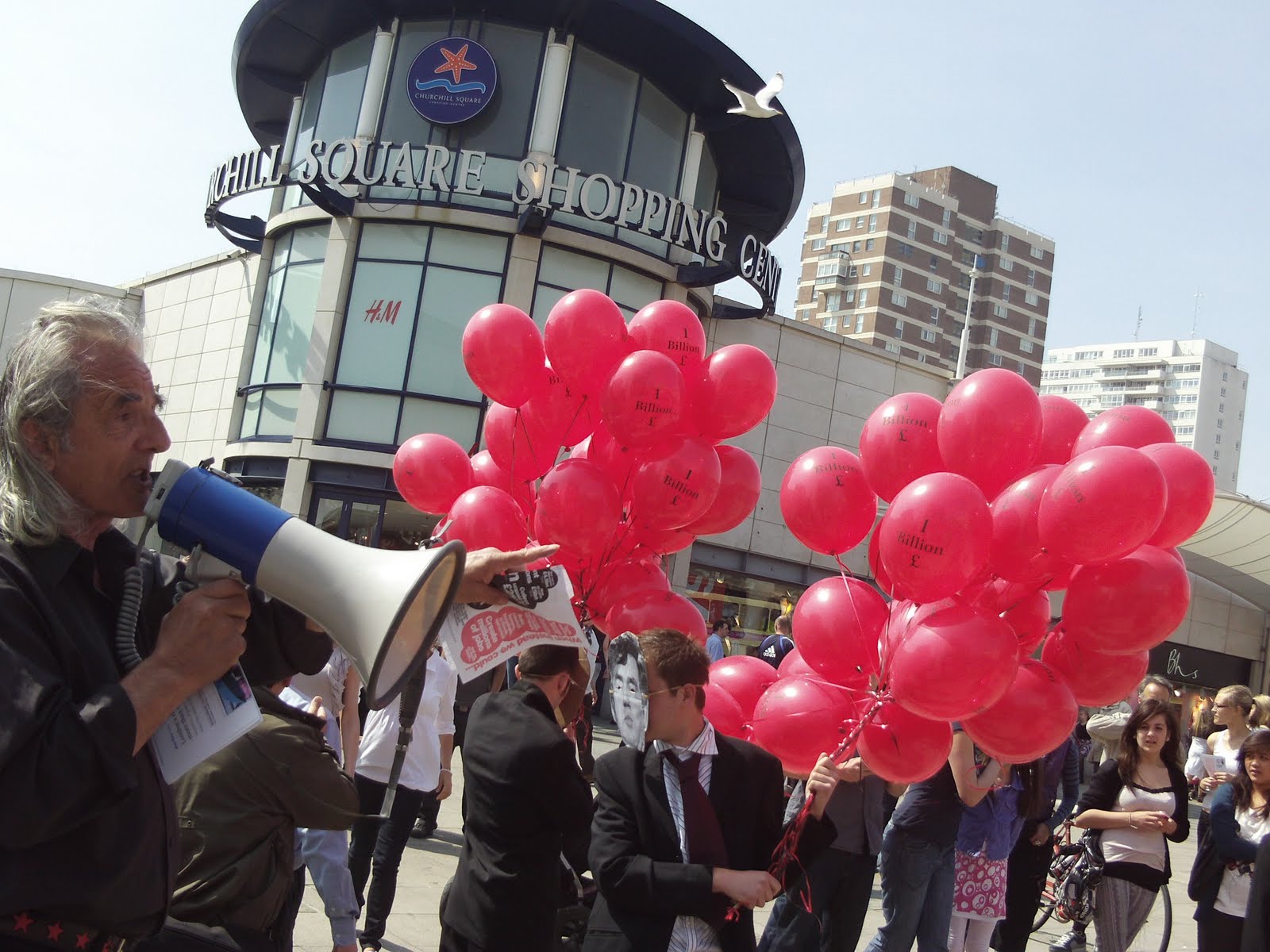 Economic Balloon stunt- 12 noon, Saturday 24th April, Churchill Square, Brighton.